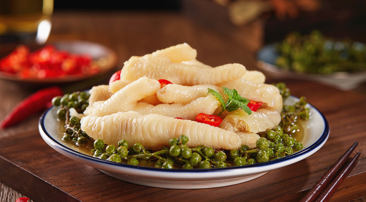 特點:以優質雞爪為原料,選用天然香料,通過人工控制發酵方法泡制而成。產品色澤美觀,香辣純正,略帶乳酸,雞肉的鮮香與泡菜的酸爽相結合,既好吃又開胃。