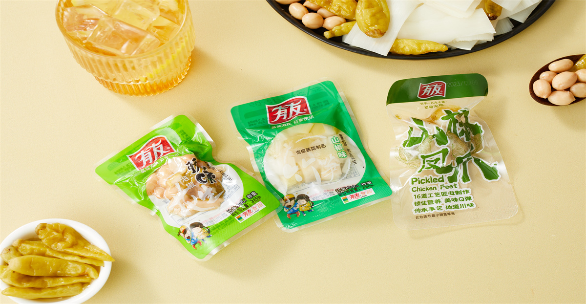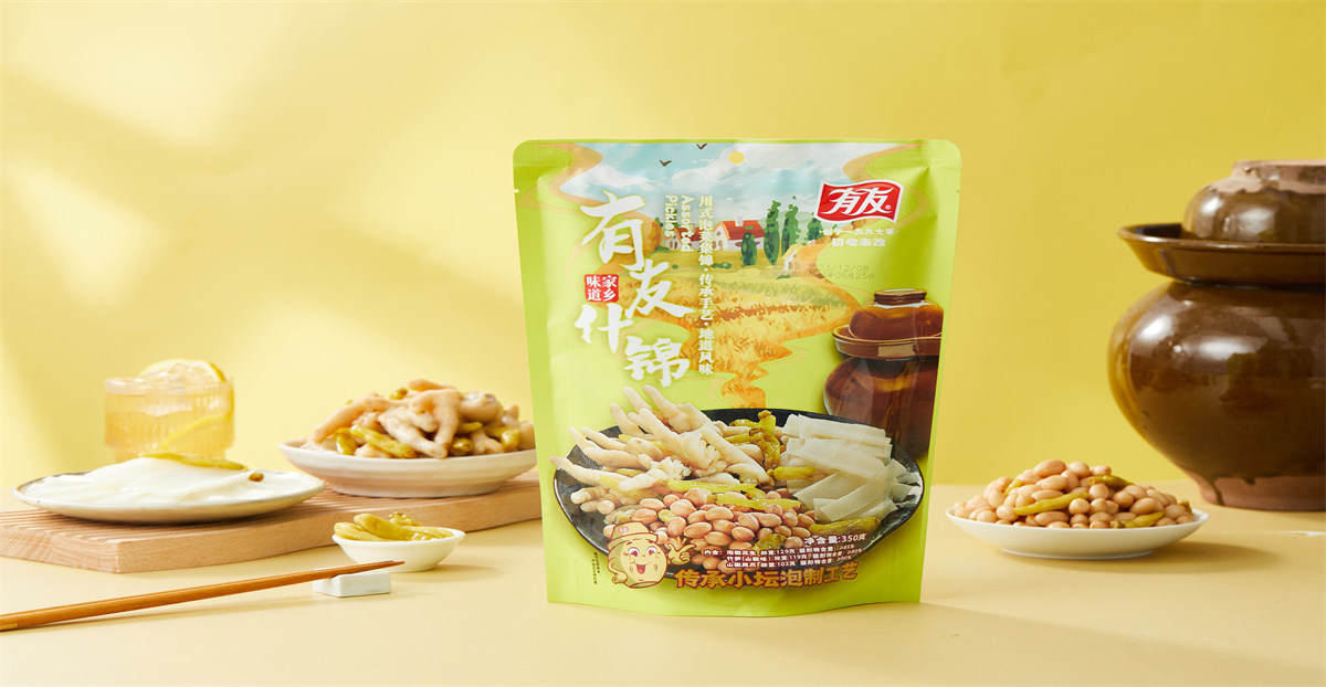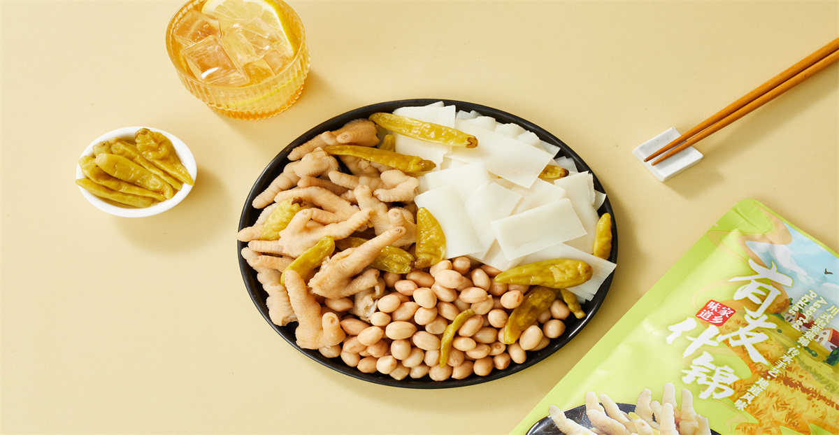 特點:精選優質鳳爪、花生、筍尖,配以多種調味料,傳承小壇泡制工藝,地道川味。脆嫩爽口、酸辣鮮香、風味獨特。